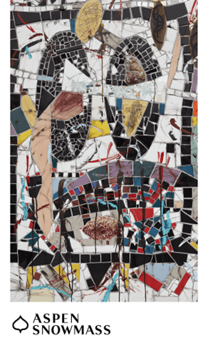 The works decorating the 2022-2023 season’s Aspen Cards will include images of Johnson’s mosaics and collages titled “Broken Men,” “Escape Collage,” and “Broken Crowd,” as well as photography of his towering plant installation titled “The Crisis.” In addition to the works featured on this season’s Aspen Cards, there will be a limited-edition ski featuring Rashid’s work, exclusively available for sale at Aspen Collection.
