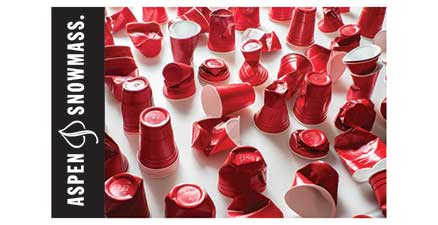 Paula Crown's five lift-ticket designs give a curated view into Crown’s sprawling sculptural installation, SOLO TOGETHER. Using the form of the crushed red Solo cup in the form of 150 unique hand-painted plaster sculptures, the work unpacks the symbol of all-American fun. The ubiquitous, single-use plastic cup offers an opportunity to contemplate a number of complex ideas including environmental awareness, the singular experience of togetherness, FOMO, and a consumer culture defined by abundance and optimism.