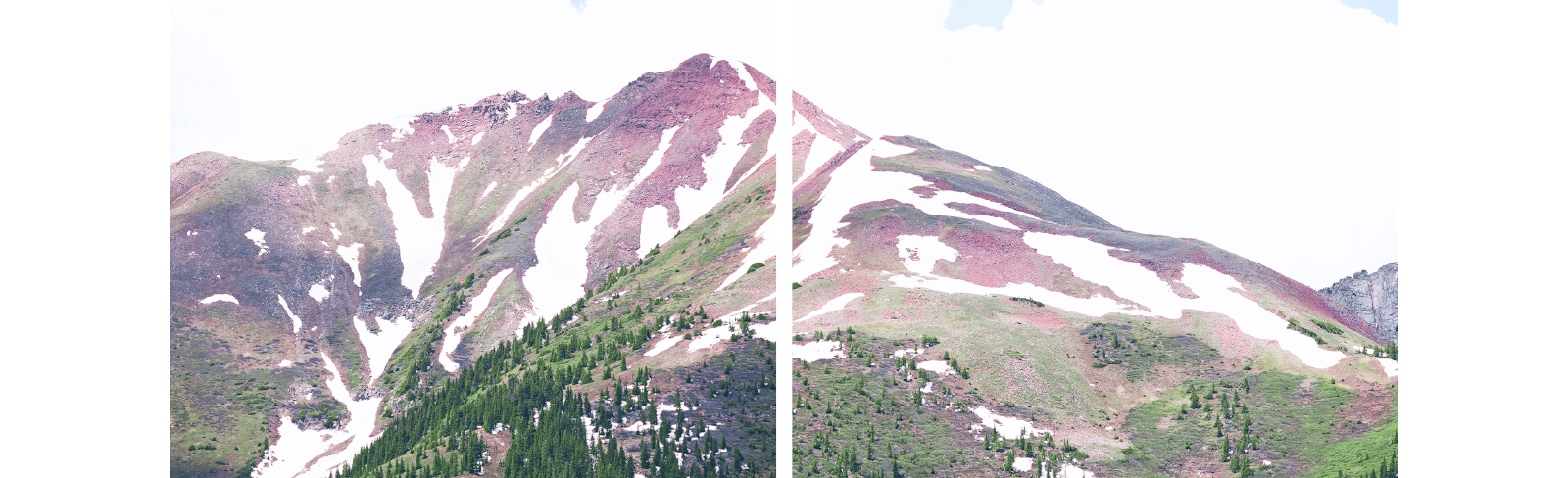 The Aspen Summer Series' multi-panel compositions were completed over the course of one year. The works feature four alpine locations photographed from different vantage points.