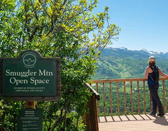 A popular “in town” fitness hike for locals, the Smuggler Mountain Trail is relatively short and rewards you with breathtaking views of Aspen and Aspen Mountain. The trail is a dirt road with a half dozen switchbacks to a long cut that curves gently to the right to a turnout with a small observation deck.