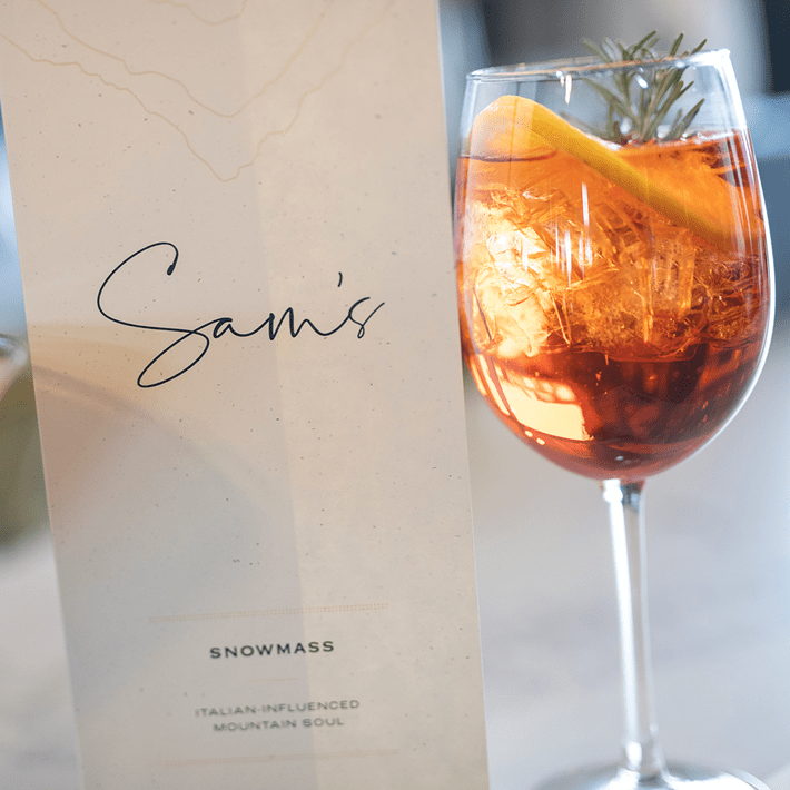 Whether you’re there for the negroni spritz, a fine wine, or a beer—Sam’s ambiance warms from the inside out. Perched atop Sam’s Knob and known for its welcoming ambiance, antipasti, variety of Italian fare, and incredible views of Mount Daley, this is the spot to grab a rosé or an Italian wine and take in the beauty surrounding Snowmass.