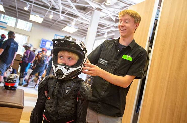 - Pro tip: Have someone who’s already comfortable on the trail “tow” you into features, so you can see how much speed they carry into jumps, and which paths, or “lines,” to take to best avoid obstacles. (Just make sure you trust them! Don’t follow Timmy into the double on Gonzo if it’s his second day riding the Park.)