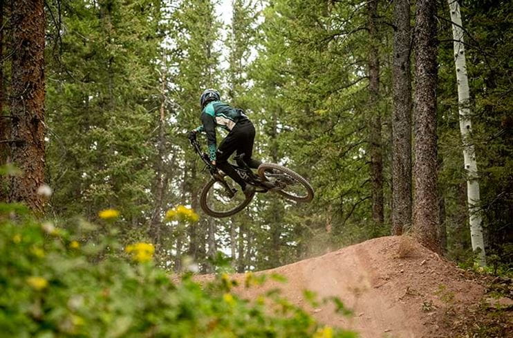 Full-suspension bikes are the norm at Snowmass Bike Park—anything with a rear travel of 130mm should keep you comfortable on most trails. If you need a loaner, check out Four Mountain Sports, which sits at the bottom of the Elk Camp Gondola. They’ll walk you through the specifics, set up your rental, and provide all safety gear.