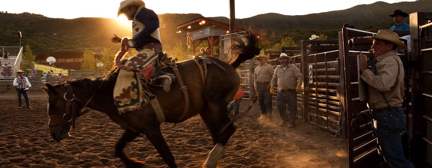 It’s a fine summer evening, a refreshing wash of light rain cooling the air and the warm flush of sunset beginning to turn everything nostalgic. The participants have filed into the rodeo arena on horseback and the American flag galloped around its perimeter by a beaming cowgirl in a crisp white shirt. After the national anthem, Snowmass Rodeo announcer Derek Barton kicks off the competitive events of Colorado’s longest-running rodeo — celebrating 44 years this summer.