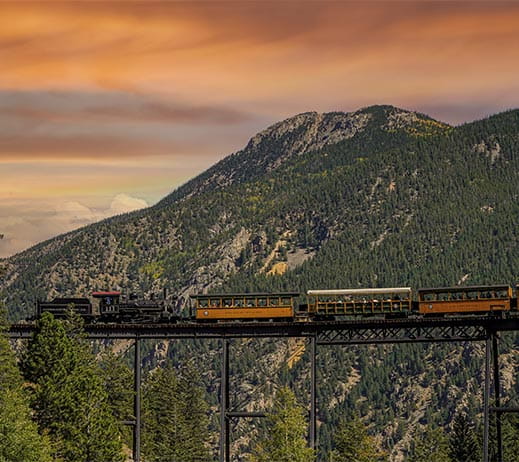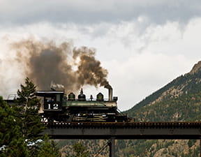 A former gold boomtown, Idaho Springs is a great spot to fuel up, grab lunch at the local Tommyknocker Brewery, or shop at the many small mom-and-pop stores. Visit the historic Argo Gold Mine and Mill, and then explore the other mineral that prompted a boom to Colorado’s 19th century economy — silver — by visiting Georgetown just up the valley. Just beyond the town (and a ways up the hill at Silver Plume) is the Georgetown Loop Railroad. This narrow-gauge railroad is pulled by an historic steam engine. Passengers ride in open carriages through the forest, past mines, and over the impressive Devil's Gate High Bridge.