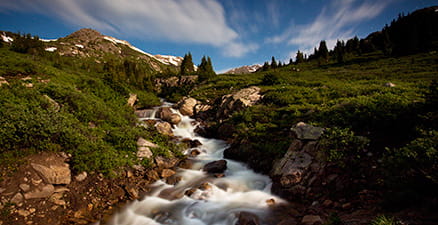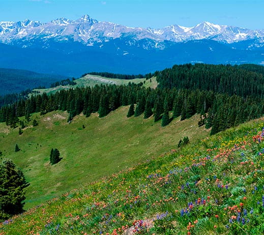 The climb to the summit of Vail Pass on I-70 is long, gradual and certainly memorable. Passing through open alpine meadows, reddish cliffs, and stands of lodgepole pine and spruce, you soon reach the second-highest point on the interstate system (Eisenhower Tunnel, which you just pulled through, is the highest). Pull off at the rest area, and — if its July — drive a few miles on Shrine Pass Road for some of Colorado’s most vivid wildflower displays.