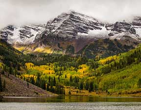 From Glenwood Springs, the drive along Colorado Highway 82 into the Roaring Fork Valley is stunning to say the least. You are immediately greeted by the beloved Mount Sopris, a burly peak that rises above Carbondale and which acts like a compass point for locals year-round. The town of Carbondale is charming and filled with eclectic eateries and shops worth exploring. Midway up the valley is Basalt, where the iconic fly-fishing hot spot, the Fryingpan River, flows into the Roaring Fork, a favorite for rafters. After a short stretch through a pretty, forested canyon, you reach the upper valley where a right turn will take you to Snowmass. Aspen lies just ahead, at the base of Aspen Mountain.