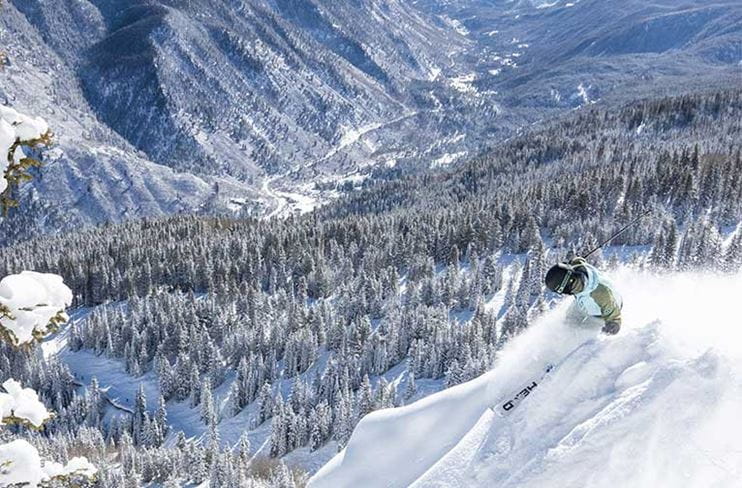 - Never skiing the same trail twice in a day, with 98 runs at Snowmass.