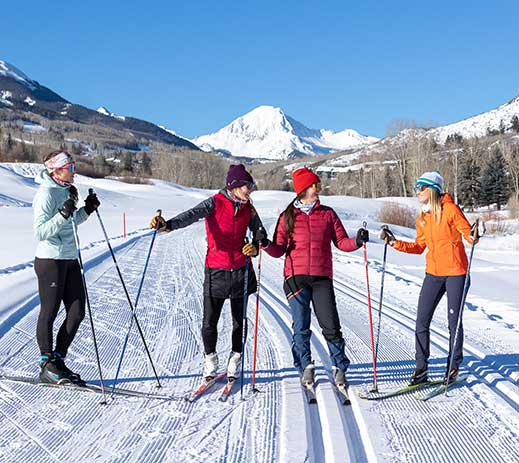 The utilitarian origins of skiing date back to the 18th century when Norwegians strapped skis to their feet to travel quickly and safely over snow. Nordic equipment is more technologically advanced these days, but the methods are largely unchanged. There’s classic cross-country skiing, which places practitioners in tracks as they propel themselves with alternating forward strides; and skate skiing, which incorporates a side-to-side motion on the skis’ edges similar to ice skating. Gear for both disciplines is available at the Aspen Nordic Center, the gateway to more than 50 miles of groomed Nordic trails in Aspen Snowmass.