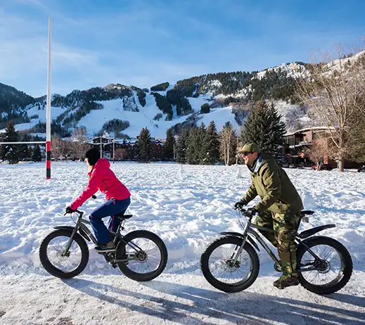 Aspen is a cycling mecca in the summertime, but a little snow on the ground doesn't mean the wheels stop spinning. “Fat bikes,” with oversized tires and fenders to protect riders from the elements, allow for comfortable year-round riding. The fat tires are typically run at a lower PSI, allowing more surface area to contact the ground, providing better grip and stability even on snow. Fat bikes are available for rent at bike shops around town or at the Aspen Snowmass Nordic Center. They are perfect for conquering trails around town or for a ride to the Maroon Bells if you’re feeling especially adventurous. Fat biking is not allowed on the ski resort unless it is a sanction event.