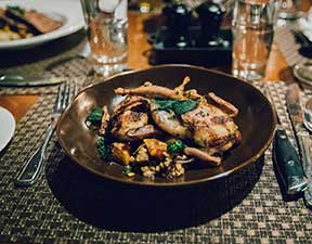 The three-course dinner ($100) includes a starter, entree and dessert. Though the menu changes, it’s seasonally themed and sourced by chef Brett Thompson, so may feature something like a hearty greens salad, Colorado short ribs and flourless chocolate cake.