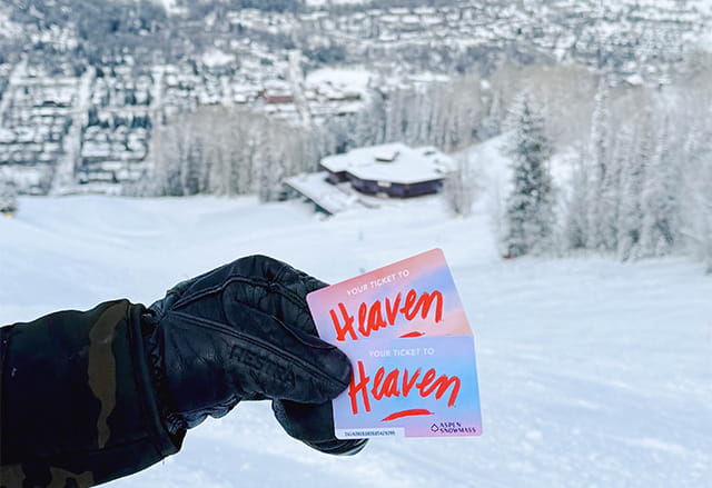 For the 2024-2025 season, Israel brings a piece of Los Angeles history to Aspen with “Heaven.” The “Heaven” logo—originally created by artist Brad Benedict for the iconic 1980s novelty store once located in LA’s Century City Mall now adorns this year’s season passes and lift tickets. The store was once a nexus for pop culture and celebrity in LA, and Israel’s use of the logo serves as both an homage to this cultural landmark and a wink at Aspen’s altitude and otherworldly beauty. Israel presents this lift ticket not merely as an image of an artwork, but as a work of art, breathing new life into a beloved brand.