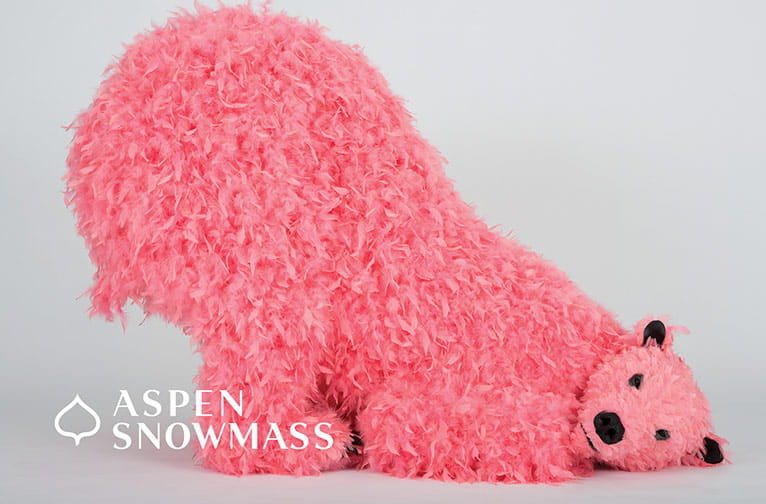 During Aspen Snowmass’ 2021-2022 winter season, look for Italian-born artist Paola Pivi’s bright, feathered bears across Aspen Snowmass. Pivi is known for her contemporary multimedia work across mediums including sculpture, photography, video, installation, drawing, and performance; this series features colorful, feather-adorned polar bears doing yoga, reclining, and interacting in human-like fashion. The whimsical creations are a joyful connection of the natural and human worlds.