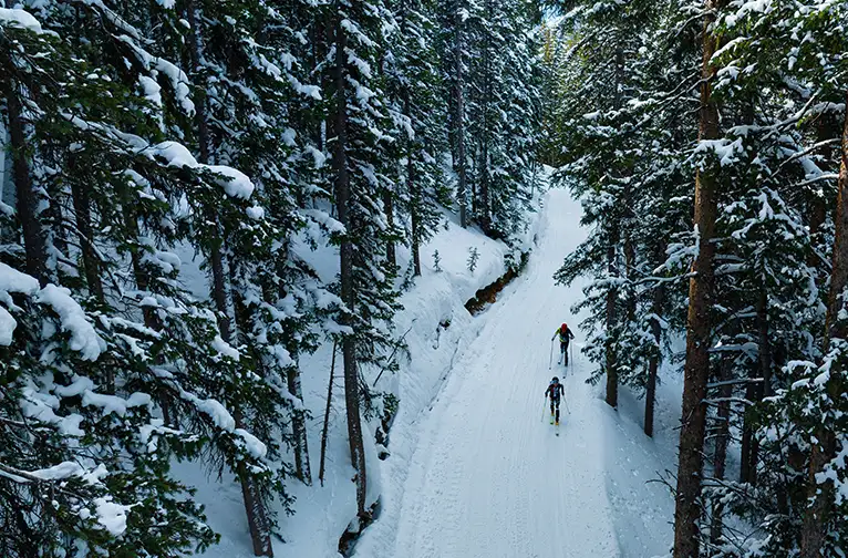 The Audi Power of Four Ski Mountaineering Race spans across all four mountains of Aspen Snowmass through the White River National Forest in the Elk Mountains. Every year, teams of two start in the dark in Snowmass and end in the spotlight at Gondola Plaza at the base of Aspen Mountain—what happens in between can be summed up with a season’s worth of training, thousands of calories, and a certain level of insanity.