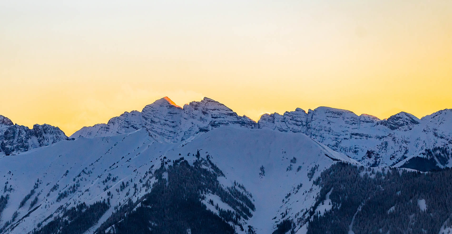 Sun setting over Highland Bowl in Aspen Colorado.