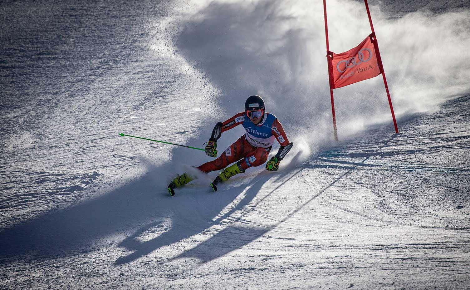 Downhill skier at the Audi FIS World Cup at Aspen Mountain.