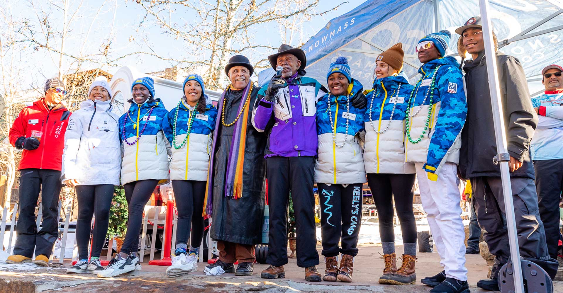 Fast forward nearly 50 years later, and one thousand people from 33 clubs were in attendance for their 49th annual Black Summit held at Aspen Snowmass from February 5th through the 12th, 2022. Five minutes into the event’s opening parade, the pride felt by each person repping their home club was palpable. Banners, flags, synchronized marching, and matching outerwear—like the bright red bombers worn by the Jim Dandy Ski Club out of Detroit or the easy-to-spot teal jackets adorning the ONYX Ski and Sports Club hailing from Tampa Bay—decorated the crowd. Generations of skiers belonging to their own hometown club, yet unified as members of the National Brotherhood of Skiers.