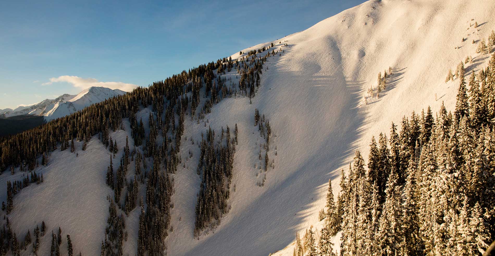 Carefully negotiating turns in the thick trees—aware natural obstacles were sure to be lurking—I funneled into the top of G2, which was completely untracked. There was a ski patroller working on the side of the run—he smiled, nodded and gave me the thumbs up to proceed. I didn’t need any further incentives. I dropped into the main headwall and it was awesome skiing, an exhilarating sensation as the snow pushed against my shins. I ended up skiing a narrow line through taller fir and spruce down to the runout zone and toward Deep Temerity chairlift.