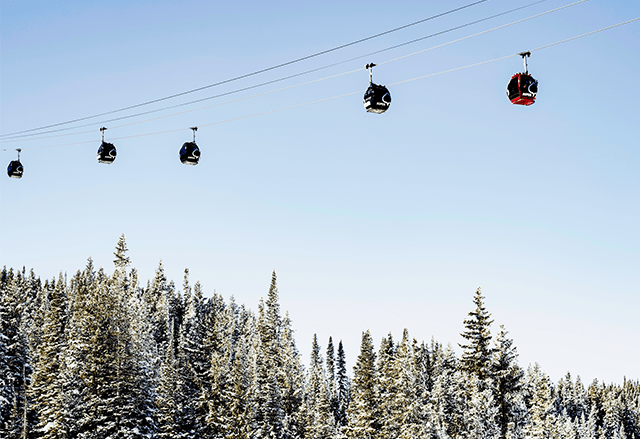 The silver queen gondola over the trees at Aspen Snowmass