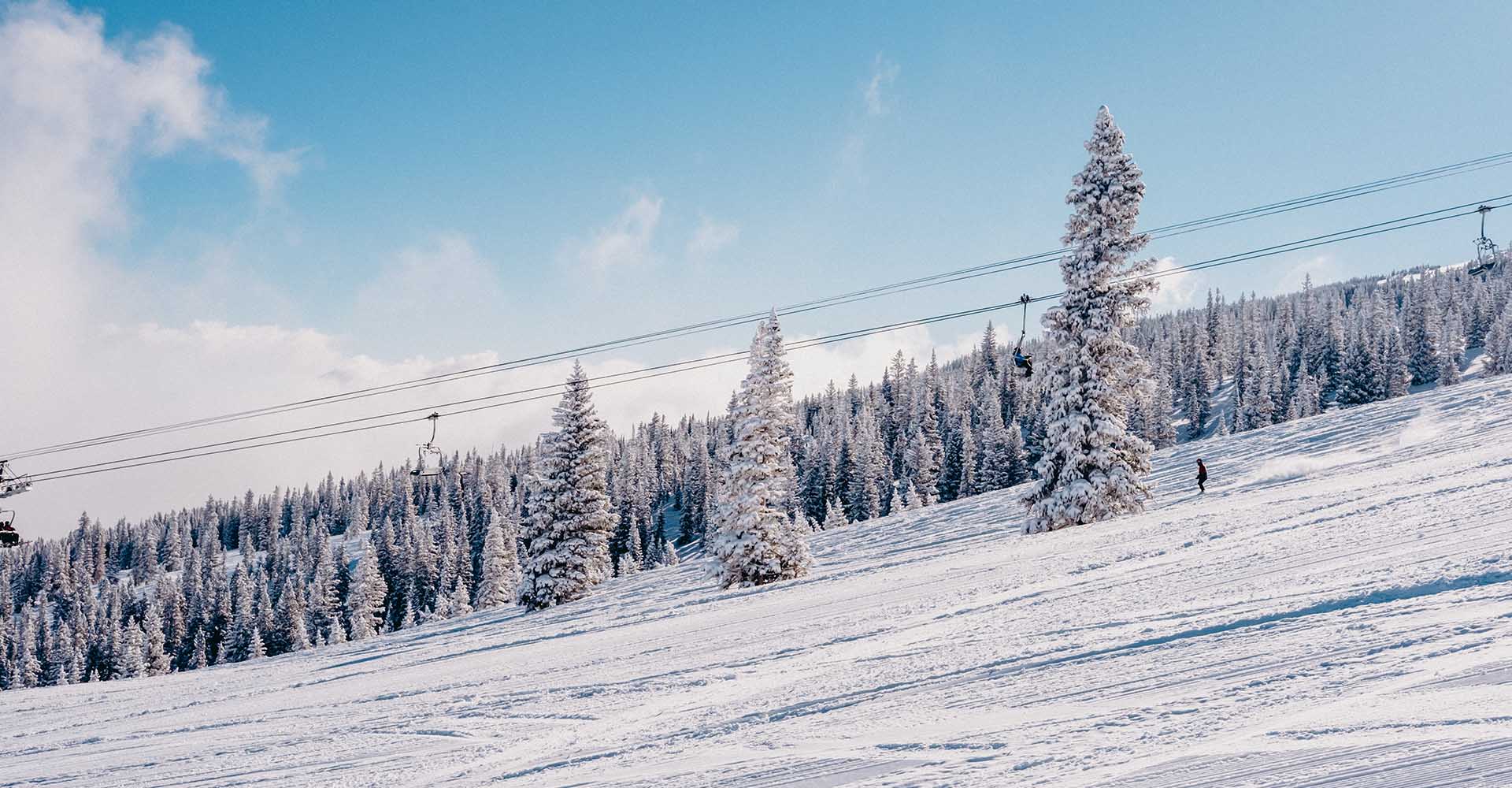 Big Burn Lift at Snowmass Ski Resort, on a snowy winter day