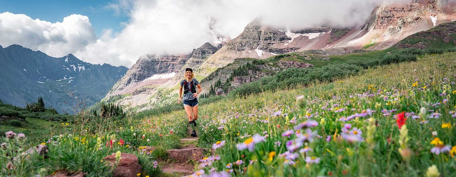 Inside Aspen Snowmass - Summer - Woman walking through alpine wildflower meadow in Colorado