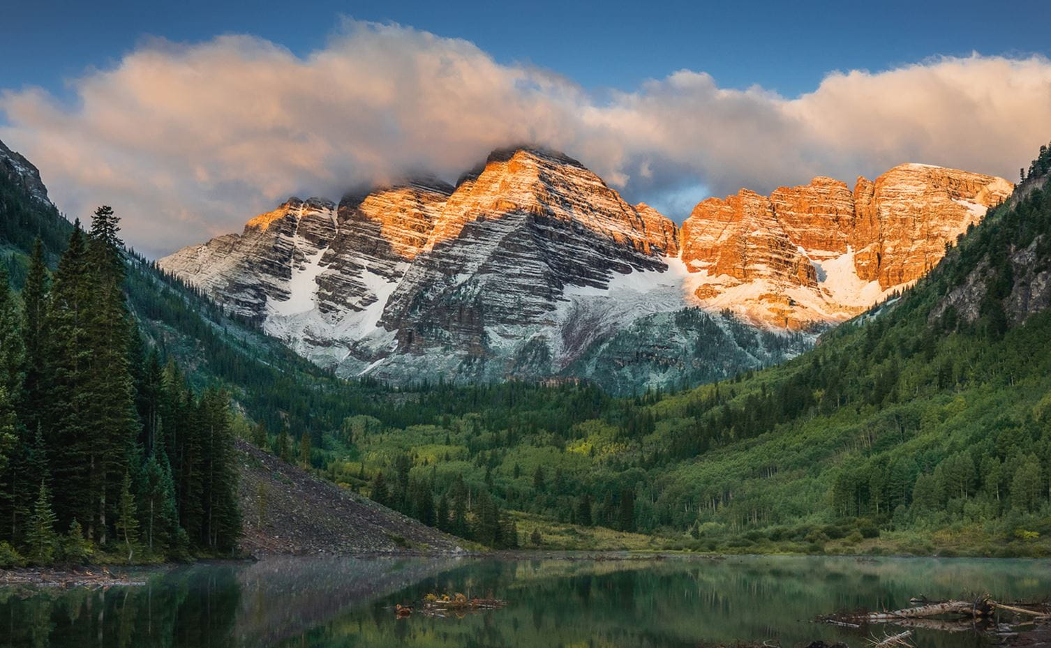 The Maroon Bells are two of the most photographed mountains in all of North America — and for good reason. Rising more than 14,000 feet above sea level just south of Aspen, the twin peaks are striped with snow all summer long. Aspen trees drape the hillsides, while Maroon Lake provides a handy mirror that grounds the whole scene in a postcard-perfect reflection.