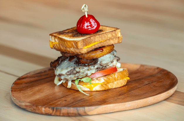 You’re sure to come back around for these locally raised beef patties decked out with smoked bacon, American cheese, Merry-Go-Round sauce, and LTOP.