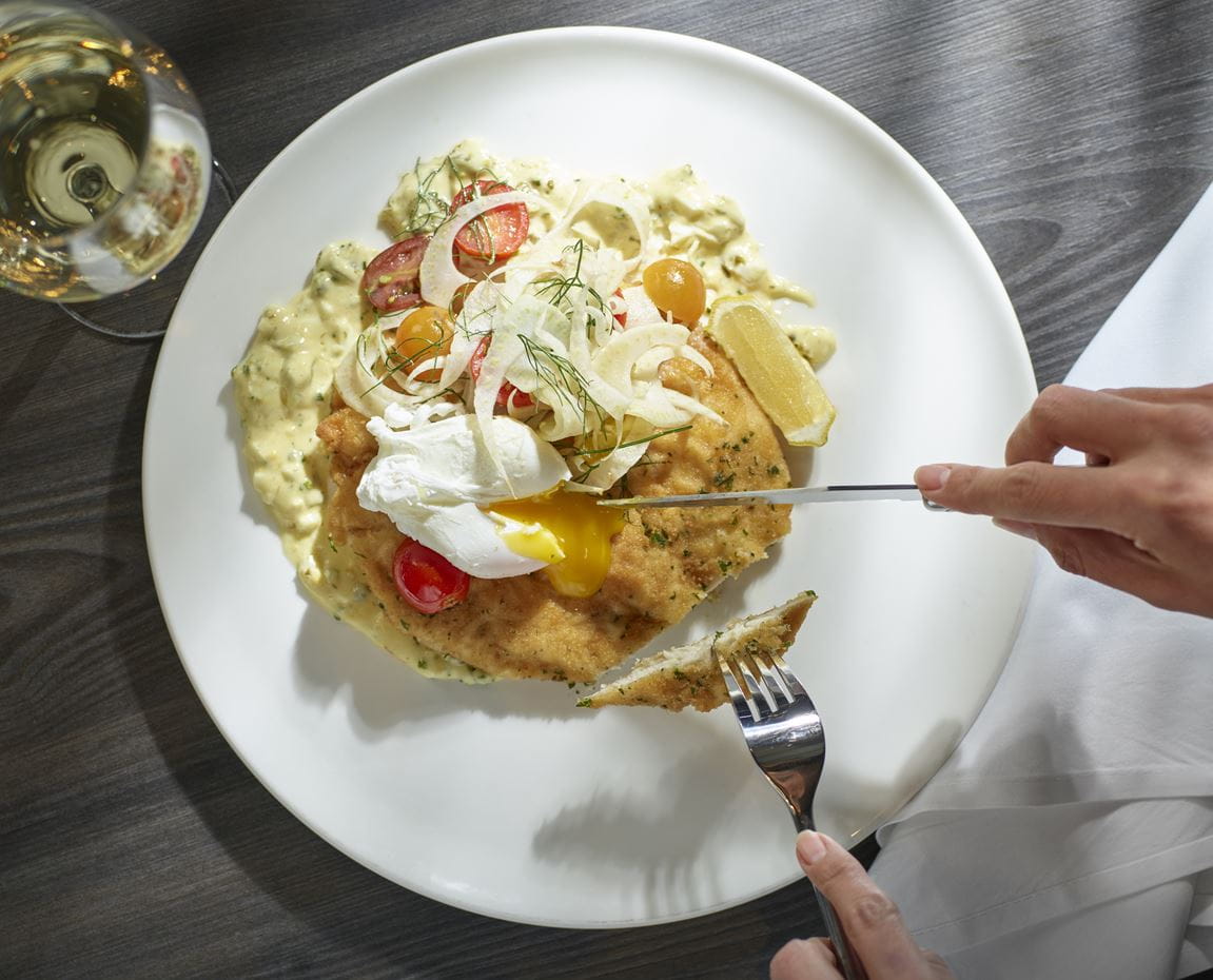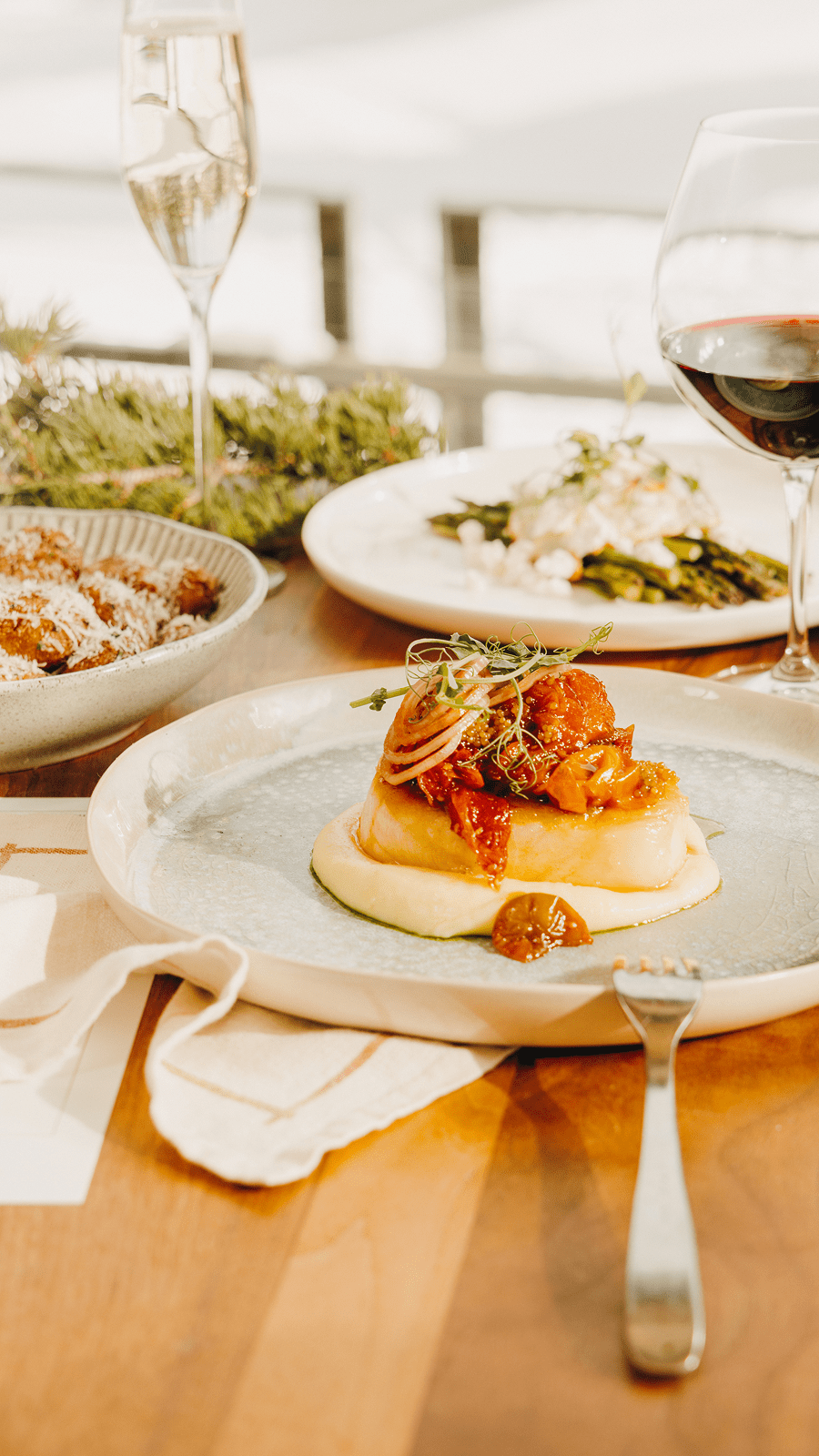 Embark on a soulful, scratch cooking adventure with a modern take on classic dishes like french onion soup, beef bourguignon, rustic ratatouille or a fondue sourdough boule. With giant windows wrapping around the dining space, Alpin Room invites the mountain landscape in, brimming with natural light and ambiance. Pair your leisurely, afternoon meal or light lunch with regional wines, craft cocktails, or a crisp brew—and polish off the occasion with something sweet, like a brown butter almond cake or a pot de creme.