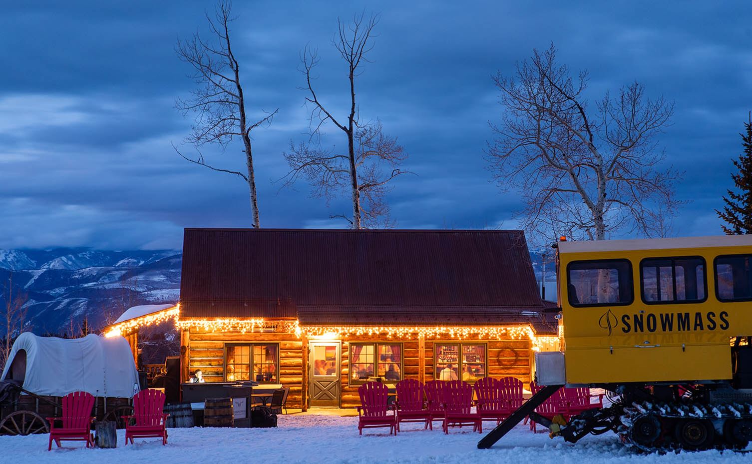 Journey through a winter wonderland by snowcat to discover one of Snowmass's most enchanting dining experiences. Nestled in the woods and accessible only by snowcat after dusk, The Cabin offers an unforgettable evening of mountain hospitality and exceptional cuisine.