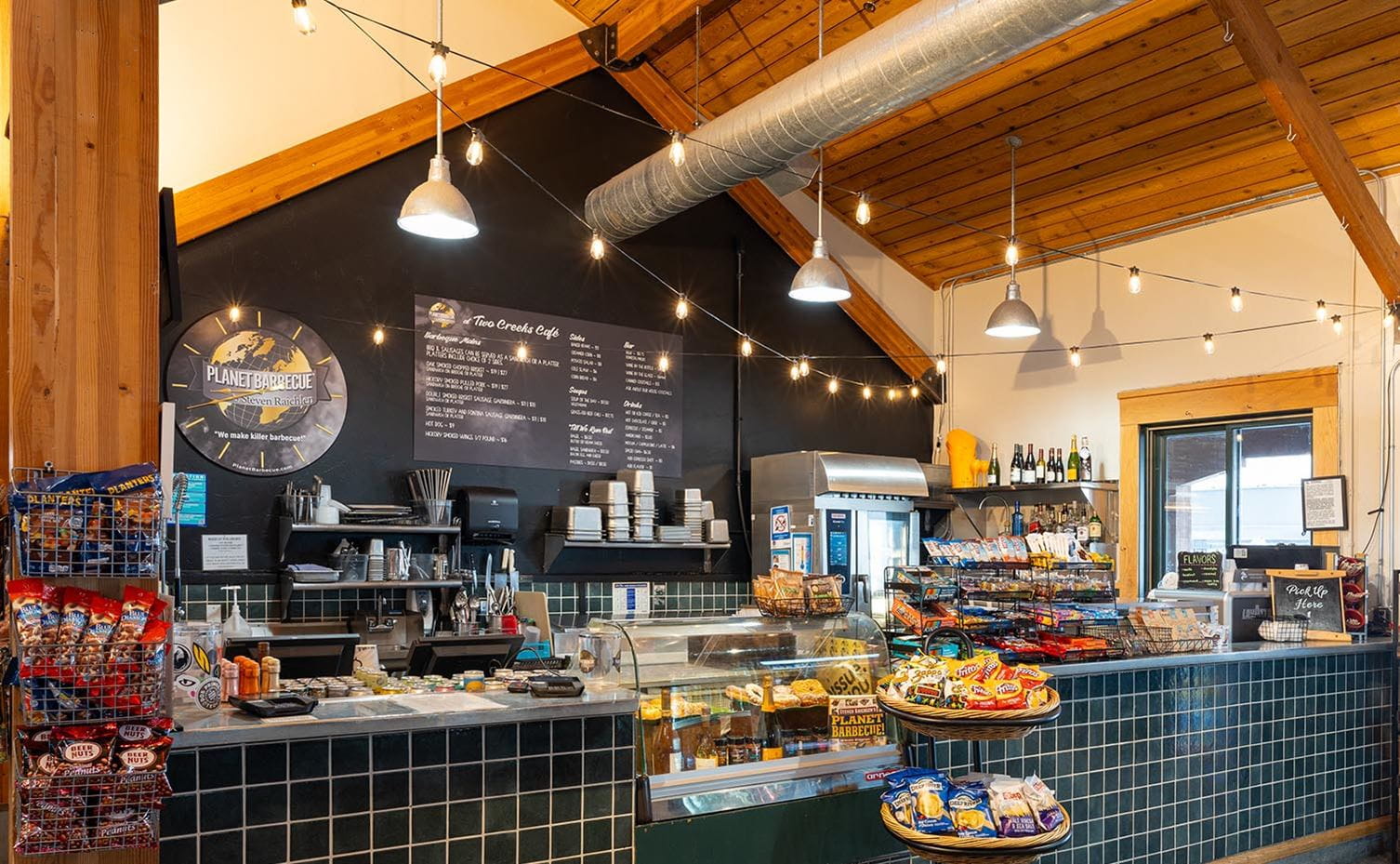 Sometimes the simplest pleasures are the ones you appreciate the most. Two Creeks Café is an easy-in, easy-out, coffeehouse-style restaurant at the base of the Two Creeks lift, which serves skiers arriving from a range of intermediate trails. Start your day with fresh-baked breakfast items and steaming coffee. Pop in for lunch and choose from a wide array of barbecue offerings as part of the new partnership with Planet Barbecue® and a hot chocolate to warm up. Or swing by at the end of your day for après ski drinks and grab some barbecue take-away for later.