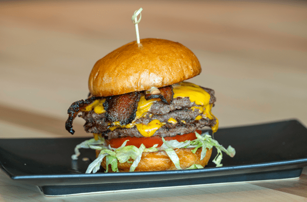 Triple meat meets triple cheese on this diner-style, locally grown, grass-fed beef burger served with the classic fixings, including LTO and homemade special sauce on a brioche bun.
