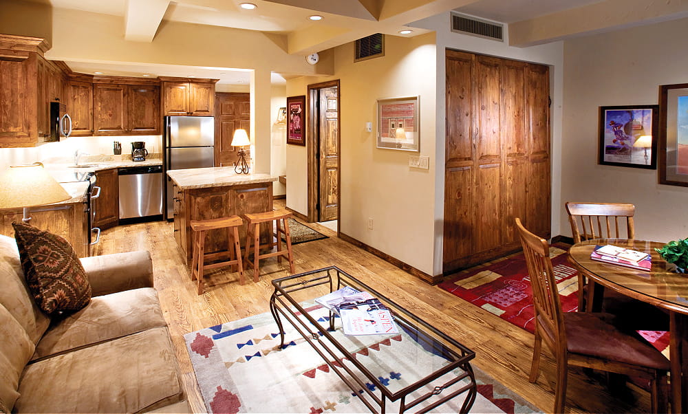 Aspen, CO 81611Deluxe apartments either on the town-side or hill-side. Each apartment has nice finishes with individually furnishings and has a distinctive floor plan with patio or balcony, a warm, inviting and relaxed ambiance. The apartment has a full kitchen, living room area with either wood or gas fireplace. Daily maid service is included, complimentary wireless Internet and usage of the Fitness center included, all amenities included without any resort fees. The bedding is not guaranteed unless confirmed by an Aspen Alps reservation agent.