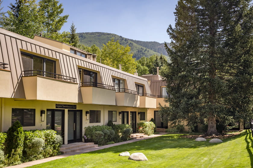 Aspen, CO 81611Centrally located less than two blocks from downtown Aspen and the Silver Queen Gondola, Aspen Townhouse East provides convenience in a quiet residential setting. Townhouses feature south-facing balconies with mountain views, fireplaces, and flatscreen TVs. Guests receive complimentary on-site parking, Aspen Airport transportation, health club passes, Wi-Fi, concierge services, housekeeping, and 24/7 maintenance support.