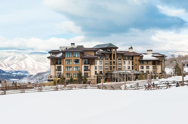 Snowmass Base Village. 99 hotel rooms, 11 private residences (six two-bedroom and five three-bedroom residences). Ski in/ski out via Elk Camp Gondola or Assay Hill, ski storage, breakfast- expanded continental included, finesses center, Limelight Lounge restaurant with best après in town, five-story climbing wall, kids’ game room, outdoor heated spa pools, outdoor fire pit, snowshoes, shuttle service to Aspen (ASE) Airport, 24-hour front desk, meeting/event room, private dining room.