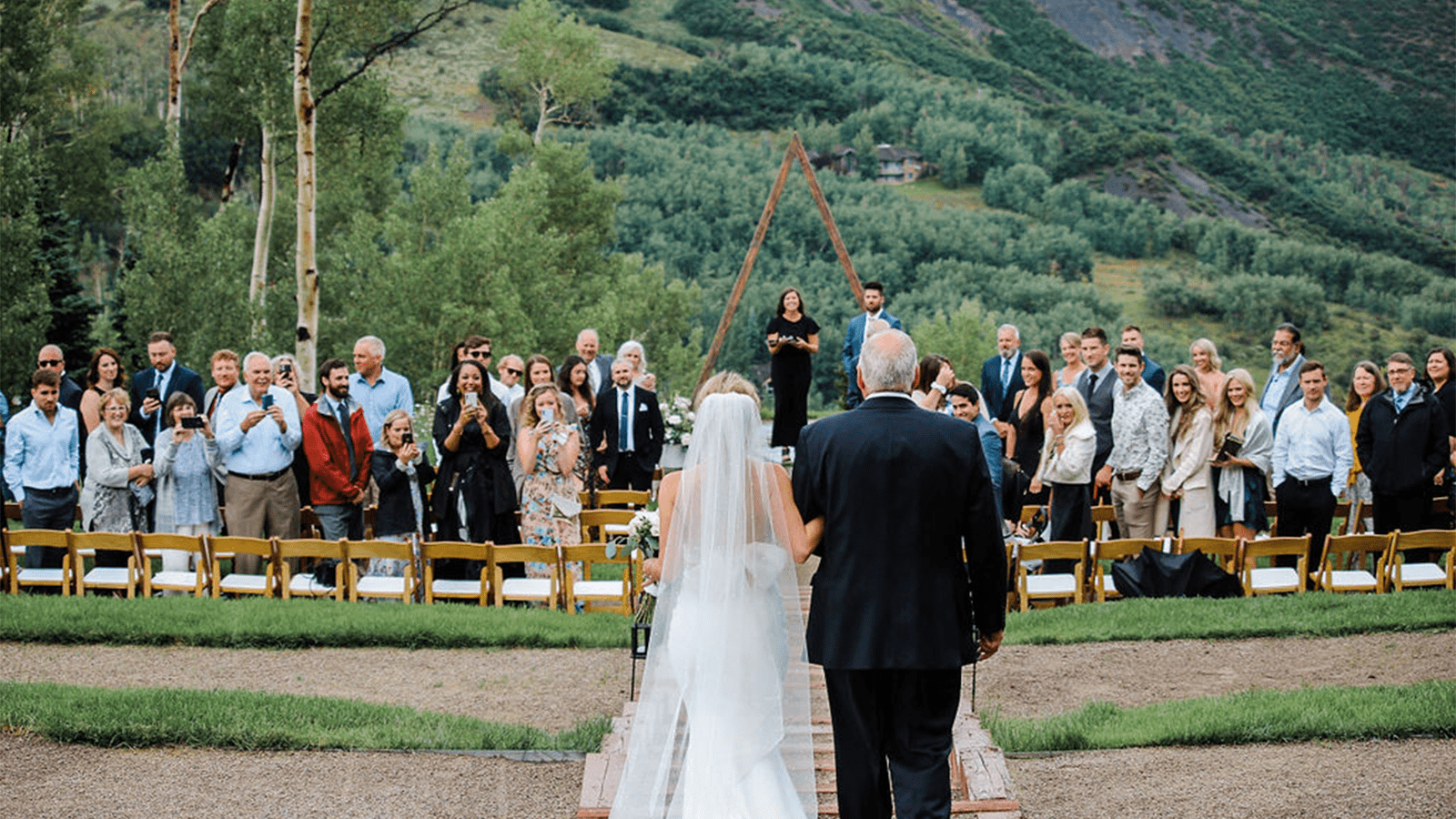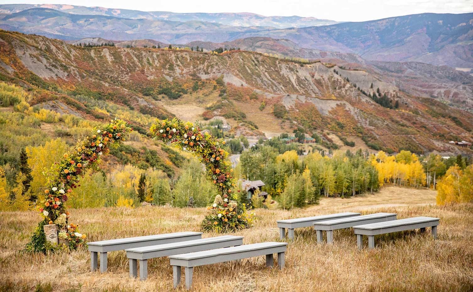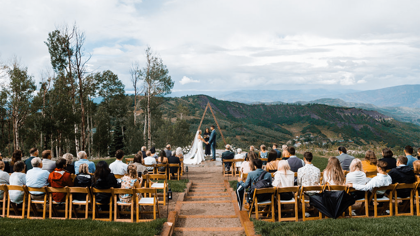 Operated by the Limelight Snowmass, the on-mountain ceremonial spot lies in a beautiful meadow surrounded by aspen trees. With amphitheater seating for up to 146 guests and a bridal suite in a nearby cabin — which includes restrooms for guests — the Terrace is among the dreamiest locales to say "I do" in the Rocky Mountains.